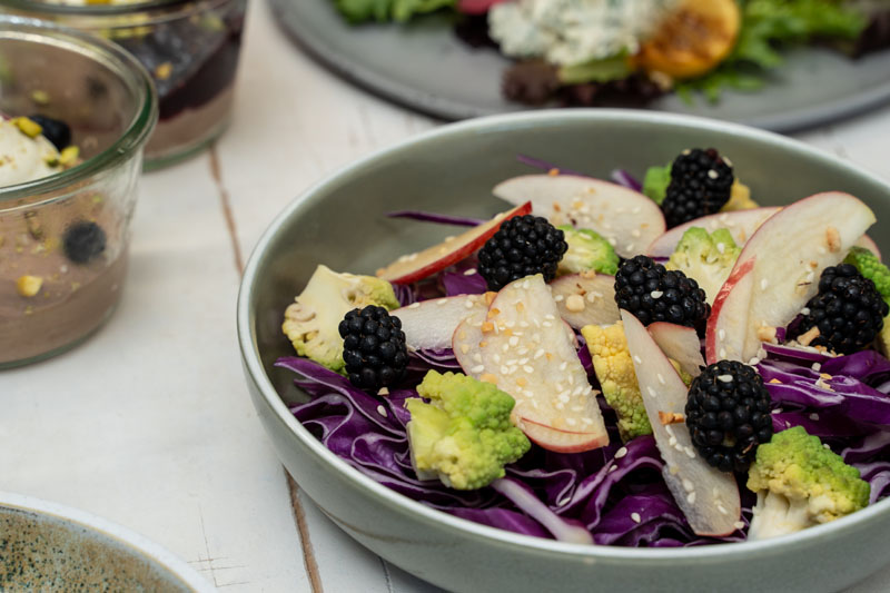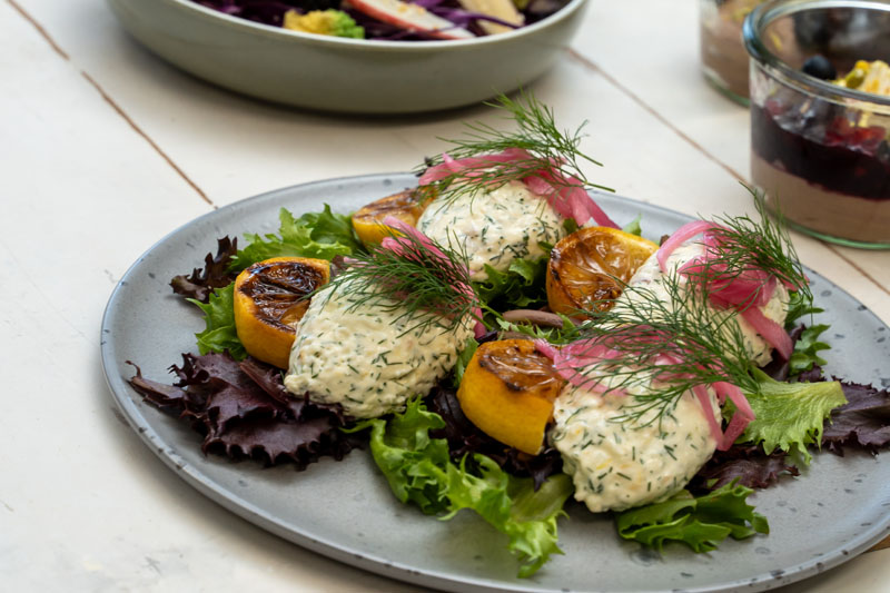 Det kolde anrettes på elegante, hvide fade og i skåle – klar til at sætte direkte på bordet.