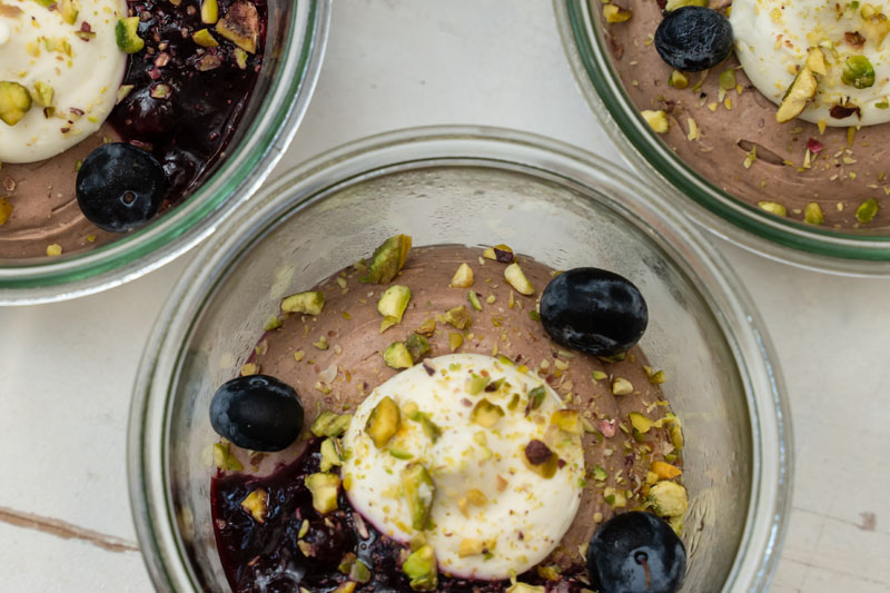 Forret og dessert leveres i separate termokasser, så de holder sig friske og kolde indtil servering.